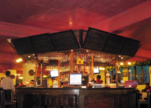 餐厅是独特的半地下室,装饰格调很有异域风情,进餐时,一首首苏联歌曲纷至沓来,《三套车》、《莫斯科郊外的晚上》、《喀秋莎》、《山楂树》、《小路》……让人沉浸于五六十年代的旧日时光……(说句题外话,那儿的表演者大多都是原苏联的功勋级歌唱家,所以对于这样的表演,虽然很有情调,却难免让人唏嘘。)