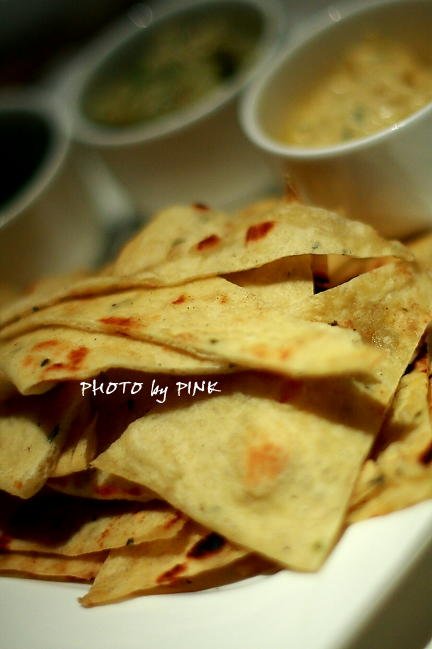 Kush Dip Plate:香香的皮塔饼配了三种各具风格的酱料,分别是鹰嘴豆,腰果和罗勒。