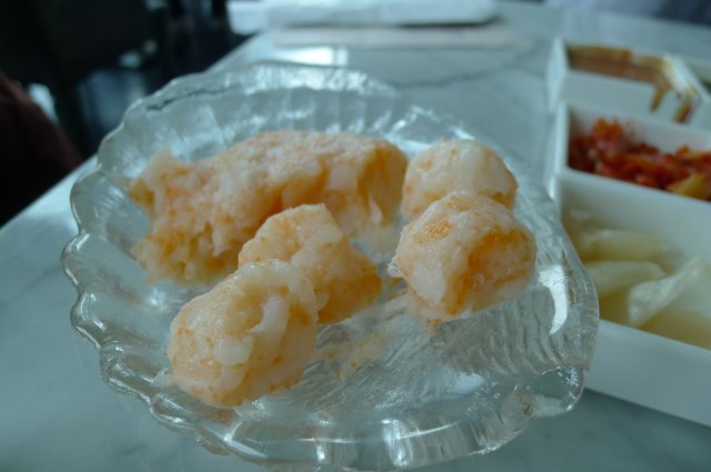 @虾滑,果然很大的一只虾,看上去真有食欲,哈哈
