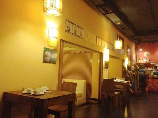 这样一个云南菜馆,馆子里面光线很暗,里面位子并不多,除了外面的散桌外,还有几个小包间,不过都不大,能坐6-8个人左右