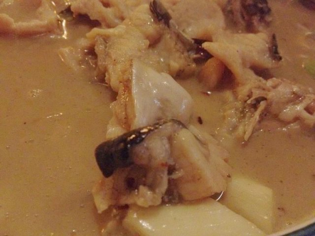 命名为桃花鱼大概是因为里面加了桃花吧,因此汤色里细品能品出些甘甜和清香。鱼肉的量还蛮大的,比一般饭店里的一份大很多
