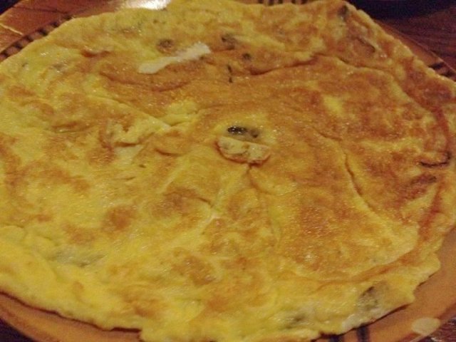 茉莉花炒鸡蛋,这个跟别家不同的是摊成了一个鸡蛋饼,茉莉花的清香让人心怡~