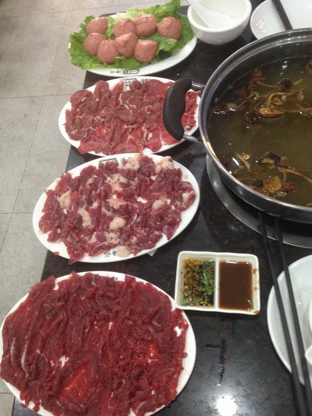 肉类因为人少,所以只点了4类,手捶牛筋丸,吊龙伴,三花趾还有 匙柄 ,原本打算点的五花趾没有了,但我去的时间刚好开市,也就估计珍贵的五花趾是老板留着来招待贵客的,也就放弃了。