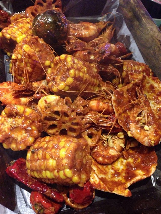冲着招牌菜抓虾来的,可惜现在已经没有针对这道菜的团购了,里面有虾、扇贝、玉米、藕,不太对我的口味,酱汁太浓稠,而且口味太甜,卖相也不是很好。