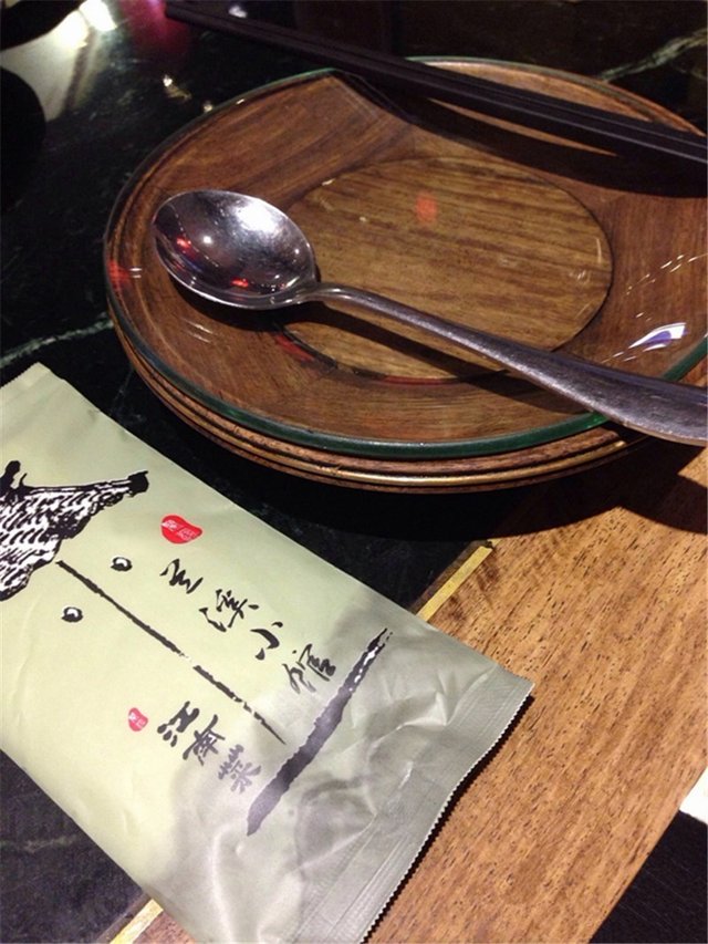 餐具倒也别致,盘子以木头为底托,但不会真的用木头,保持了相对的卫生,只是勺子和外婆家一类的比较像,沉了些,用时间长了手腕有点吃力。还是喜欢白瓷勺。