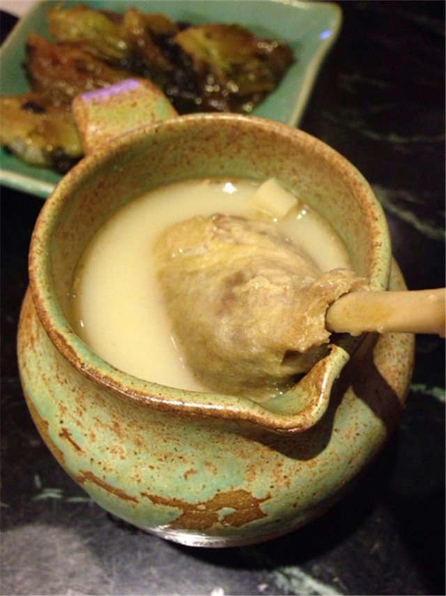 老鸭汤,汤色奶白,没有腥味,很清淡滋补,鸭肉也很烂糊,鸭腿基本上可以脱骨了。