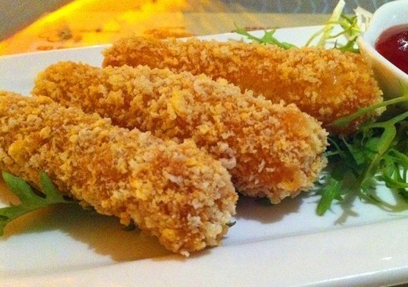 老婆欢喜的带我来,她不喜欢去夜店high了,开始喜欢上这种有情调又安静的地方了,一看菜单,中、西式全都有,既然来这里了,就来个西式的吧,意式奶酪火腿拼盘、菲力牛排、番茄芝士焗水饺还有pizza统统都点了,但点完后发现餐厅的菜量很大,呵呵,吃的我俩都撑了。那个大拼盘很值,奶酪和火腿很多,奶酪新鲜,味道很纯地道,牛排火候把握得很好,口感很嫩。pizza的水准不错,和站点的差不多,芝士和馅料很多。