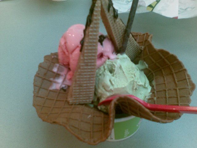 冰期时代 小猫英二等級32012-04-197 瀏覽 關注 之前团了这家的法布芮阿玛蕾娜樱桃双球圣代~所以趁最近天热去吃了~~ 冰期差不多有20来种冰激凌口味~~可以任意选择两种口味的冰淇淋球~~ 选了草莓和抹茶的口味~~ 草莓的比较一般~~~抹茶的倒是做的出乎意料的可口~~茶味比DQ的抹茶系列还重~~ 配上上面的华夫饼和POCK非常好吃~~~ 不过有点郁闷的是买的时候加料的服务员忘了帮我们加樱桃酱~~等吃完才发现也懒的跟他们去说了~~以上食評乃用戶個人意見 , 並不代表OpenRice之觀點。讚好分享冰期时代 冰期时代 https://s.openrice.com/KtbT100yIq100檢舉 張貼 評分5味道4環境4服務5衛生4抵食用餐日期2012-04-18