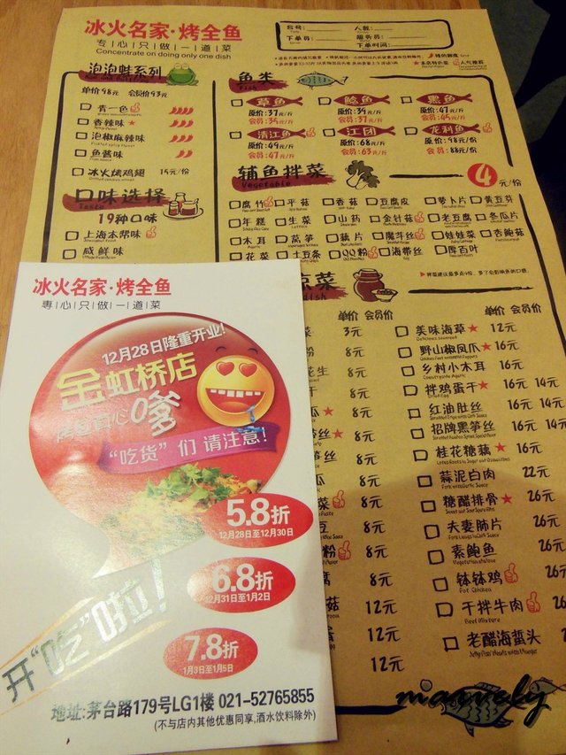 冰火名家 marvely等級42014-12-3118 瀏覽 關注 很久没吃过烤鱼了几个朋友比较了一番,决定到这家冰火名家吃烤鱼了。 他家的菜单也是纸质的,做旧的样子。 前菜里的钵钵鸡,鸡皮Q弹,鸡肉幼嫩,酱料入味,而且鸡肉并没有因为酱料的浸泡而变得松软。 常吃烤鱼的朋友强烈推荐点了怪味的,鱼我们选择了清江鱼,说是怪味,其实其中的酸甜咸香辣麻中,必然有一种是对你口味的。 店里新推出的牛蛙我们也点了一份,口味选择的是主打的酱香味道,看着满满一大盆的牛蛙,感觉好实在啊。而酱香的味道也没有让我们失望。 点心我们点了份虾仁春卷,出人意料的好吃。 甜点则是花生沙冰,花生酱的味道能够再浓厚一点就好了。111以上食評乃用戶個人意見 , 並不代表OpenRice之觀點。讚好分享冰火名家 冰火名家巫山烤全鱼 https://s.openrice.com/KtbT1007bOE00檢舉 張貼 評分3味道3環境3服務3衛生3抵食用餐途徑堂食