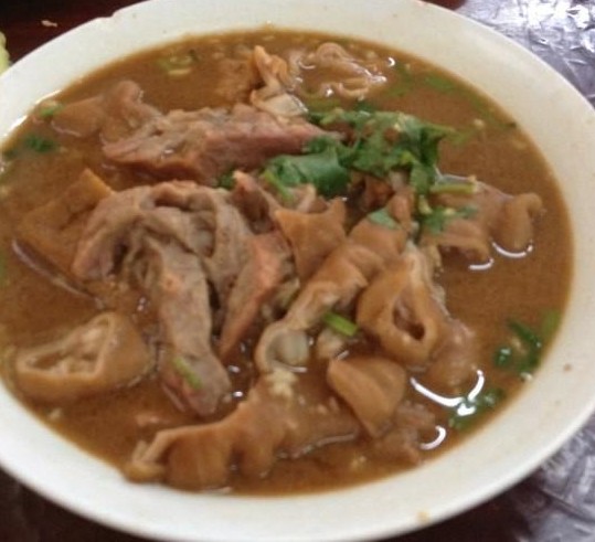 卤煮量比较大,里面的肺头,肝啊,肚啊,大肠小肠什么的,都处理干净,没有腥膻味儿,口感软嫩适中,火候到位,汤底特别的醇正,果然是老汤不一般啊,其实更喜欢吃里面的下脚料,烧饼其实不太爱吃的,呵呵,不喜欢它硬硬的口感,加点大蒜汁,辣椒油,太好吃了。