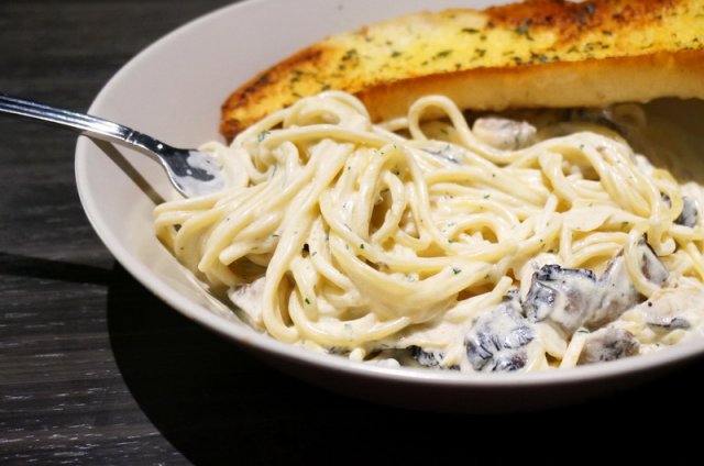 浓稠的白汁配弹牙的意粉,真的很好吃!