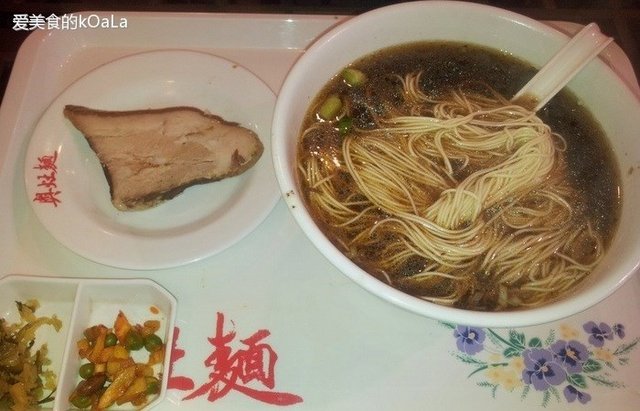 虽然价钱是比焖肉面贵,但我觉得没有焖肉面好吃!还是红汤的,排条老着点,但是花生米很香哦~