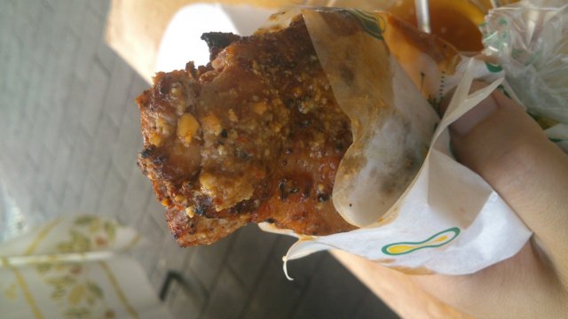 恩 于是我就一边排队,一边拿着这个鸡翅包肥肠(哦漏,这个名字打起来好累哦)