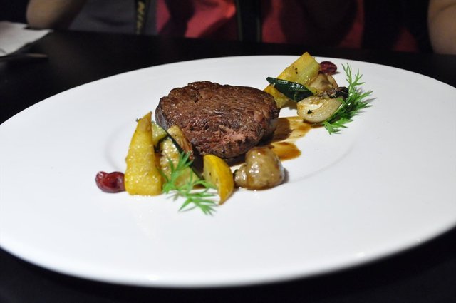 牛排较厚,但烤得外酥里嫩,汁水很足。配上玫瑰盐,鲜香味立马烘托出来了。