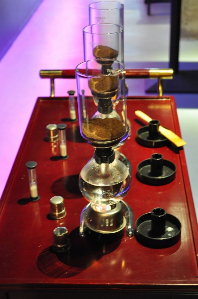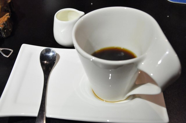 是现煮的,装在有架子的烧杯里。味道香醇,入口回味,可自行添加牛奶和糖。