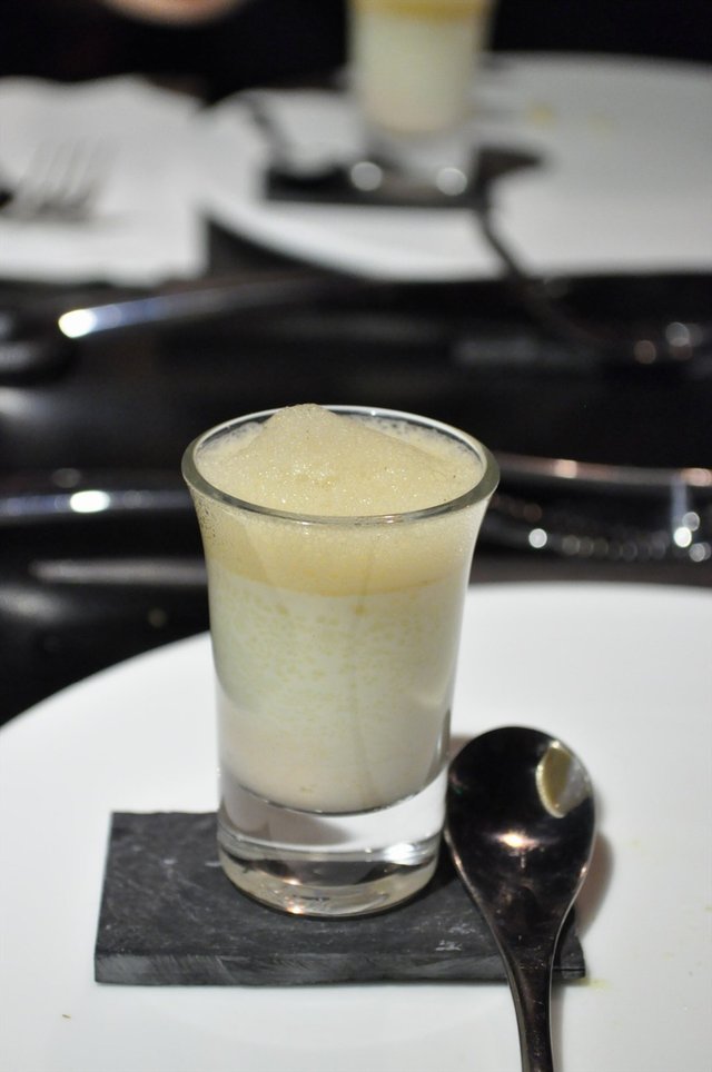 装在白色的咖啡杯里,还以为是卡布其诺呢。表面是层起泡,汤很鲜很香,带着一点咸甜味。