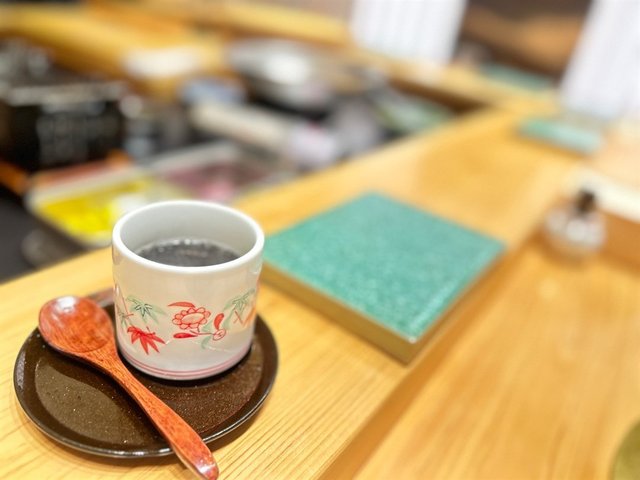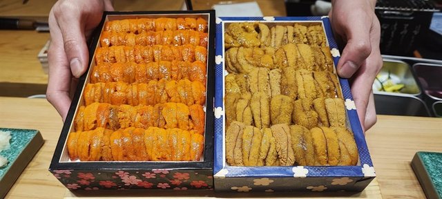 食完七款壽司之後其實已經6/7成飽,但跟住落嚟就到重頭戲海膽熱狗! 師傅拎出兩盒分別係大連同加拿大既海膽俾我地!男朋友同我即刻兩眼發光🤩 海膽入口軟滑即溶,帶有啖啖的海水鮮味,唔腥!如果驚太飽可以同師傅講少飯