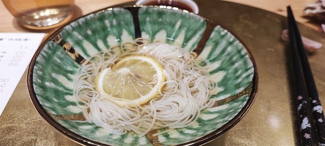 尾二一道係醋柚素面,淡淡柚香加上幼素面,非常解膩