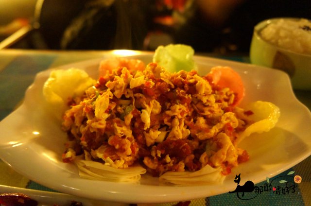 吃的很多菜都是限量的,一天八份,一天十份儿,晚上去的时候肯定已经没有了。点了仨菜一碗米饭,我们俩都不饿,就够了。