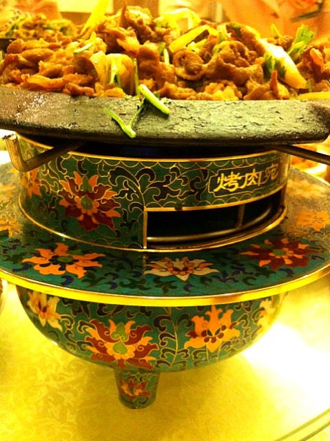 【烤精品羊肉】128.【烤精品牛肉】98.烤肉宛几百年的摘牌菜!容器传统,精美,还有持续加热的功能。浅浅的一盘,真心不便宜。肉肯定是好吃,但我真觉得没有金炙坊、烤肉刘的好吃,况且相较之下性价比低很多……本身喜欢羊肉,但他家的羊肉毫无膻气味儿,一丁点儿也没有……我个人的观点是羊肉吃的就是那膻气味儿,这没了膻气味儿,仿佛羊肉没了精神,因此今天牛肉更胜一筹。