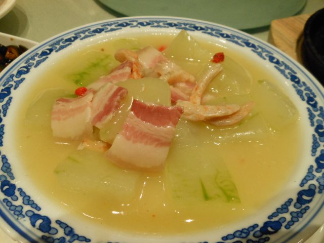 2.咸肉虾干烧冬瓜,32元;第一次这么吃冬瓜,咸肉应该是猪五花肉腌制的,虾干很大个,整道菜的鲜味和咸味应该就是用五花肉和虾干来提味滴,还不错。虾干大多数都被我吃了,五花肉有点肥。