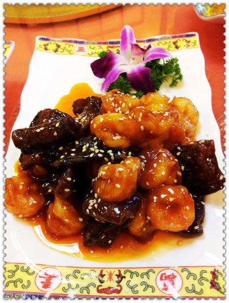 虾爆鳝~~ 鳝段和虾仁的个头都不小呢,挂的酸甜口的欠汁儿,味道不错,口感非常饱满~~