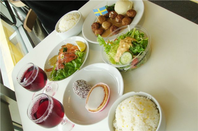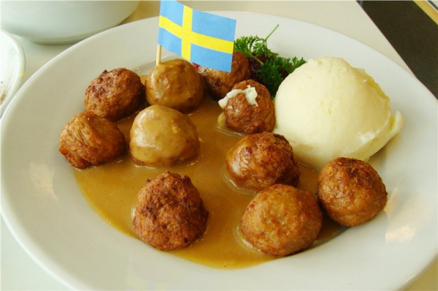 那个【瑞典肉圆】今天不能半价~哎。可惜~(十个15.5)。味道还将就~吃的时候有点冷了~因为不太喜欢吃肉~只吃了两个~~那个酱有点腻味~是不是用咯很多的猪油啊~~旁边还有草莓酱~我更是不吃。甜的肉圆子多奇怪~还有一大坨土豆泥~我是觉得比肉圆好吃啦~纯属个人口味~