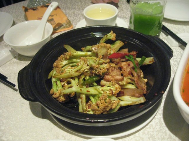 有机花菜煲,很喜欢吃有机花菜的,这个煲里头还放了些腊肉,这样花菜就更出色了,火候很到位啊,菜还有些脆蹦蹦的,但是不会觉得生。