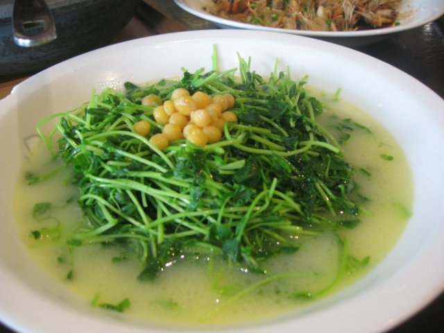 豆苗,菜单上的名字叫什么豆味煮,其实就是炒盆栽豆苗啦,蛮嫩的,清清爽爽,挺好。