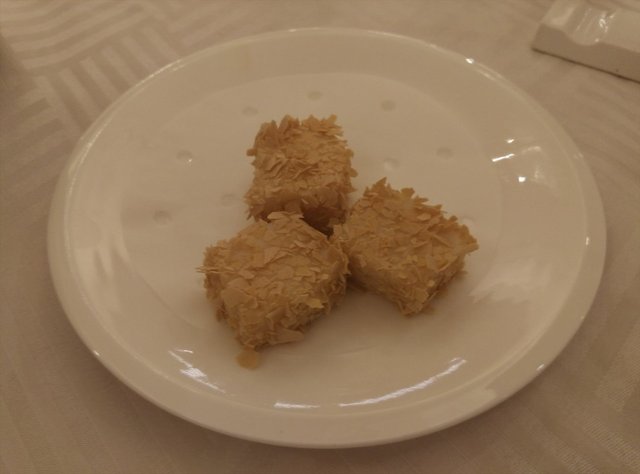 燕麦糕,外层裹着燕麦,里面带点薄荷味,蛮清爽的。
