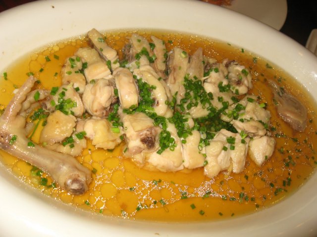 清蒸湛江鸡,蒸的做法让人感觉很健康,而且保留了食材的原汁原味,鸡的选材很好哦,很鲜美,鸡肉很嫩但不会觉得软趴趴。