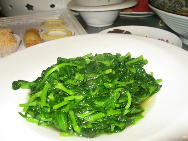 蔬菜是清炒豆苗,豆苗老嫩的。