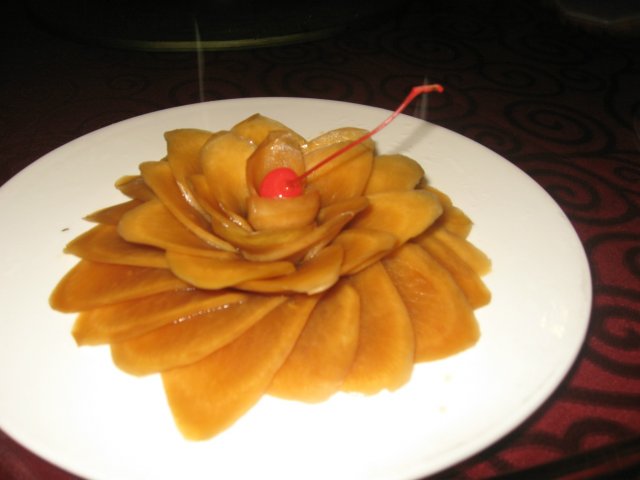 酱萝卜,摆成了花的造型,挺漂亮的哦,脆脆甜甜的味道,很爽口哦。