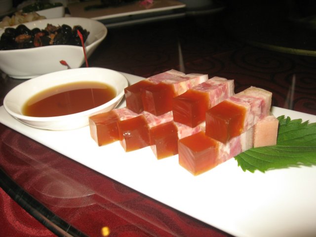 水晶硝肉,蘸着醋吃,很灵哦,肉冻很Q,肉的咸鲜味,也让人齿颊留香。