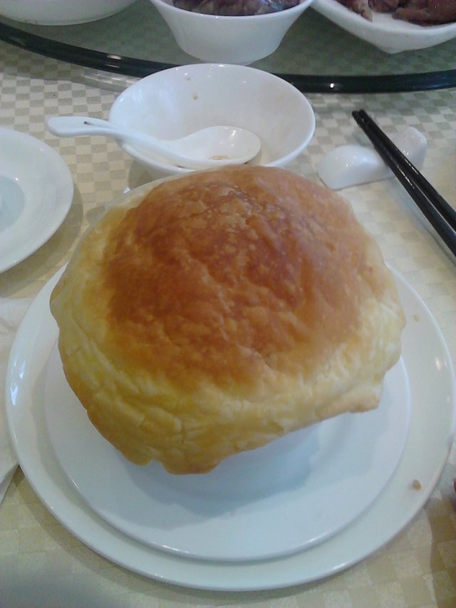 点心要了酥皮海鲜汤,又可以当汤,又可以作咸点。汤的奶味蛮重的,酥皮的造型不错的说。甜点要了雪媚娘,糯米皮软软黏黏的,里面是细滑的奶油和一小块木瓜,不会太甜,赞。