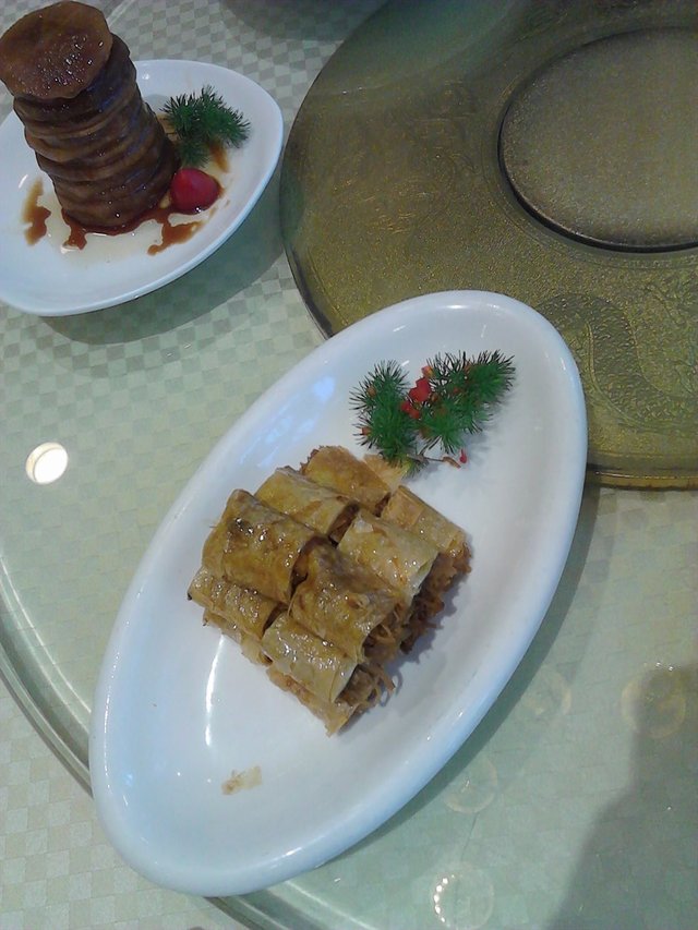 热菜点了两只乳鸽,招牌鳜鱼,法式蜗牛,脆皮小唐菜,德国咸猪手,白灼芥蓝。乳鸽,烤得老灵的,皮脆肉嫩汁多。招牌鳜鱼,这个不灵,我点的这些菜里,这一道最贵,还号称招牌,但是真的不咋地,锡纸包着,鱼有点小啊,吃不到多少肉,口味偏甜腻。脆皮小棠菜,这个蛮好吃的,外层很脆,小唐菜酿在虾肉里,好吃。法式蜗牛,这个也是每回必点的,蜗牛固然味道不错,但是好多朋友都更喜欢垫在下面的土豆泥哦。咸猪手,都是精肉啊,骨头旁边的都是活肉,好吃。白灼芥蓝,芥蓝很脆很嫩,清清爽爽,不错哦。