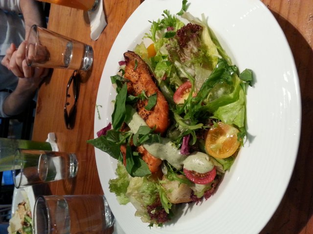 午餐 掉了5毛钱的孩子等級32013-09-104 瀏覽 關注 正大一楼的新元素,感觉位置还蛮偏的。公司聚餐所以进去吃了一顿,本人不是很喜欢吃沙拉,我一直觉得是给兔子这种玩意吃的。不过我还是点了份烤三文鱼的沙拉,最后当然没有解决完啦,老实说这家的沙拉做的还可以的,就是我不是很喜欢吃。三文鱼烤过之后就没有生吃的鱼片来的新鲜爽口了。其他同事点的餐我也叫不上来名字,不过我有图~大家可以看图片。上菜速度我觉得不是很快我们等了很久催了好多次才上菜,速度确实很慢。建议吃沙拉配个面包或者其他的能填饱肚子的东西。以上食評乃用戶個人意見 , 並不代表OpenRice之觀點。讚好分享午餐 新元素 https://s.openrice.com/KtbT100N3O700檢舉 張貼 評分3味道3環境3服務4衛生3抵食人均消費¥120