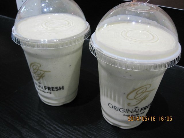 服务生榨汁和奶昔搅拌的过程一气呵成。一个大容器正好是4杯的量。所以速度也相当快