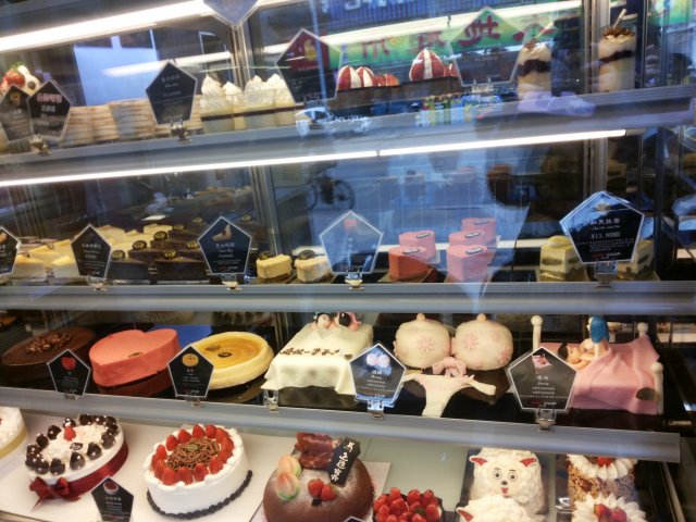 本来截止日期已经到了,但是商家好像是延期了,于是在大年三十的前一天屁颠儿屁颠儿的领蛋糕去了,北风那个吹啊我去~天气真是各种冷,进入到店里的时候瞬间温暖,但是左看木有服务员,右看还是木有服务员,只有一个服务员在打电话,然后还有两个烘培师在唠嗑,哦对了~还有一个顾客在挑蛋糕。