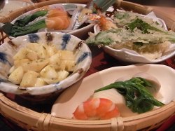 樱花套餐68元,包括一点点的生鱼片,几片天妇罗,一碟笋丁墨鱼,还有一碗樱花饭,樱花饭,就是樱花虾饭啦,味道没有鳗鱼三彩饭好吃,当然价格也差了很多。