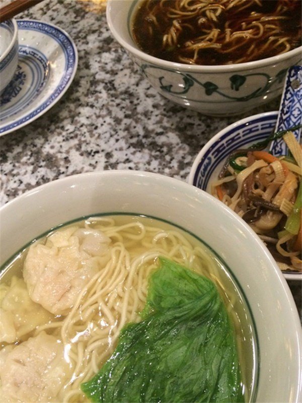 朋友要的鸭血粉丝汤、炒面还有小笼包,我吃的馄饨面,很好吃,清淡不失滋味,凉菜有一个拌三丝挺好吃的,就是量好少!!!