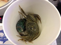 蟹,鲍鱼,只能拿一样一个。很新鲜,都是活的,然后再煮到锅底里面去的。个头感觉还好吧。