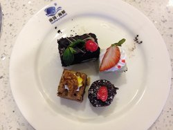 蛋糕,这个种类有点多,放在了一个透明的橱柜里面的。甜品区域感觉都还多好看的。我凭感觉拿了几个,感觉味道都还挺不错的。而且都挺有卖相的,很是漂亮的蛋糕。