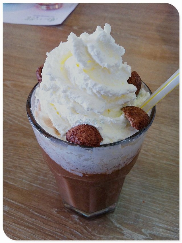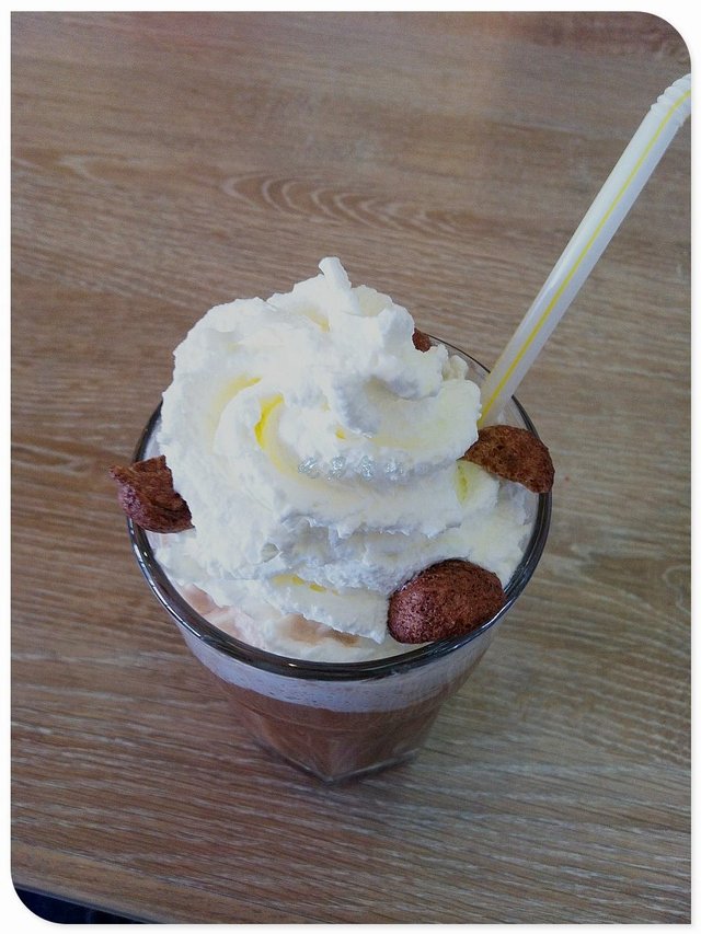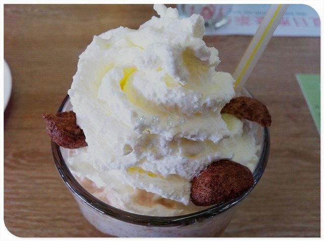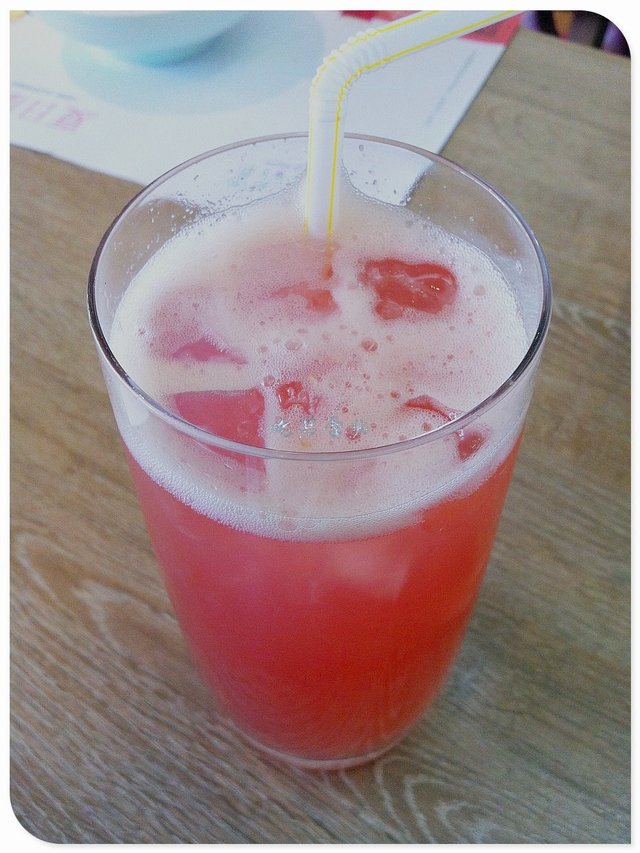 饮品选择了葡萄柚香茅乌龙冰茶和谷物雪顶乐口福,葡萄柚香茅乌龙冰茶口感清凉,适合在这个炎热的夏天饮用;谷物雪顶乐口福,类似于雪顶咖啡,上面是一大块厚厚的奶油,下面是冰凉的咖啡,咖啡很不错,喝起来透心凉。