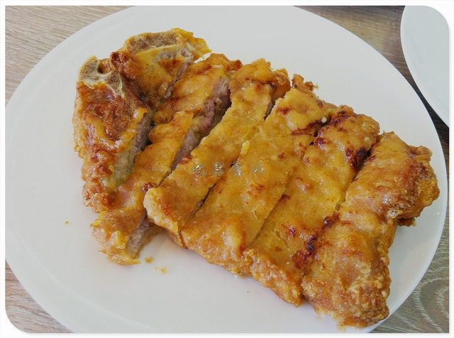 小食选择了上海炸猪排,猪排配了汤汁来蘸,个头不小,外面裹面炸制,不知道为何,猪排肉很难咬,或者说根本咬不烂的,比较失败。