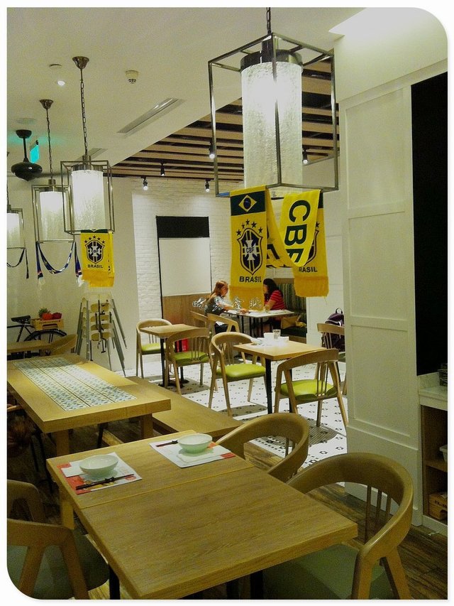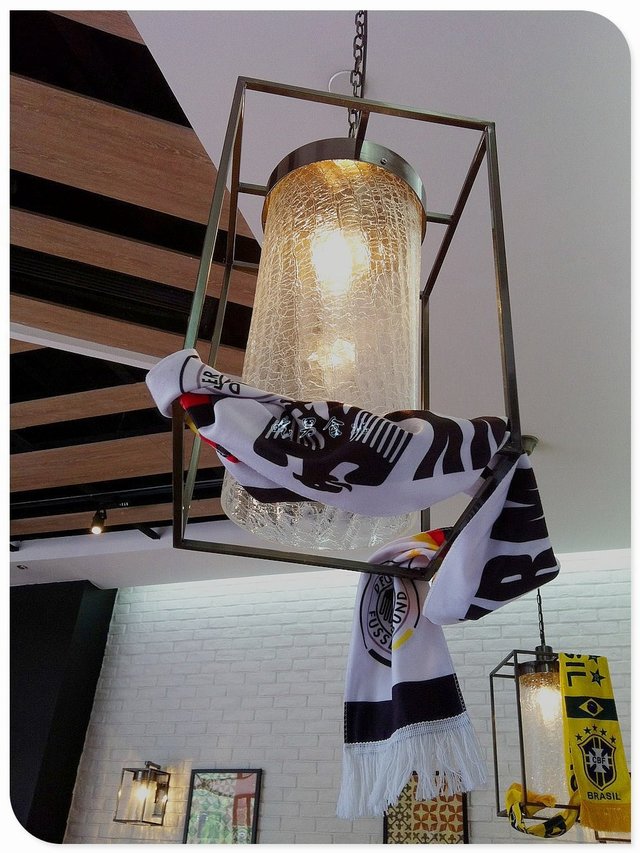 环境不错,位于蓝港,装饰为小清新的味道和感觉。正值世界杯,店里同样洋溢着世界杯的味道,头顶可以看到世界杯参赛各支球队的围巾,作为德国队球迷,正好坐到了德国队围巾下。一层空间不大,座位不多,地下一层空间相当大,位置多,还有电视可以观看。