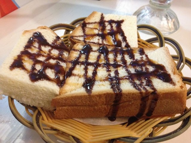 牛排套餐配了吐司面包,面包上淋了巧克力酱,很好吃想续加被拒绝了。