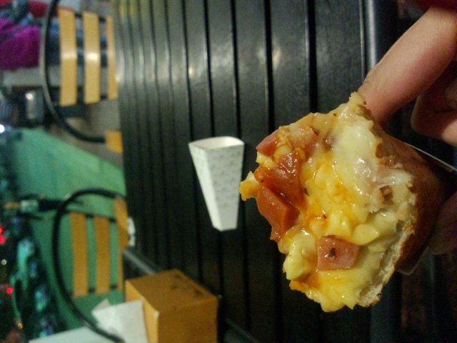 在微博和人人上超火的一家店,当时好多人被手握披萨的新创意深深吸引到了,但在永安里实在太远了,一直没有去。直到近来去了一趟秀水才去了,是团购的,据说团购价在不断地涨,而且比很多后来的手握披萨店都贵不少。店就在秀水外面,店面的装修很一般,而且里面没有座位,只有露天座位,大冬天晚上还是挺冷的。但手握pizza真心好吃啊!比一般pizza好吃。馅是一直到底的,而不是只有表明有一点点。而且填满的都是火腿和芝士,芝士拉丝很足很香,绝对真材实料,刚出炉热乎乎的咬上一口超香超级满足。总之虽然价格微贵,但是非常推荐!尤其没吃过卷筒披萨的可以尝尝。在一号线永安里站下,秀水街外面。