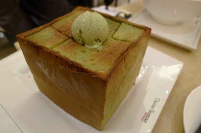 @ 幻彩厚多士配抹茶冰淇淋/38块,厚多士吃了好多次了,但是第一次有口味的厚多士,还蛮不错的,他不仅冰淇淋有味道,连那个面包都是有抹茶味道的。这个东西吃了很容易饱,本来他说这个东西考起来蛮,我们下好单就开始烤了,没想到挺快,菜都没吃完就上了,结果我吃了几个小块就有点饱了。。。最后外面那个墙稍微尝了点,还不错~