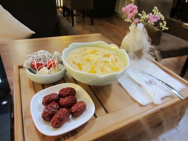 不仅是一碗杨枝甘露,竟然还搭配了金丝小枣和水果沙拉。